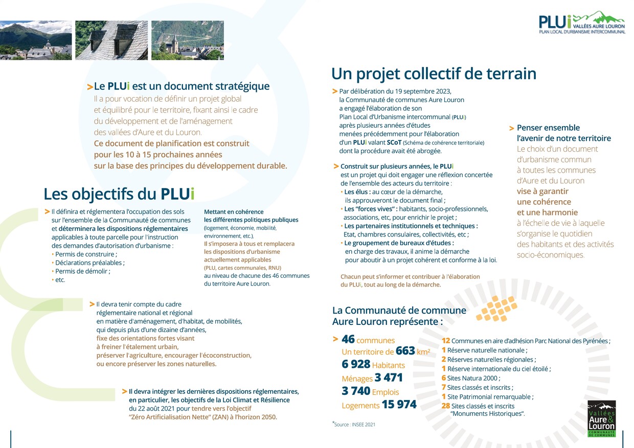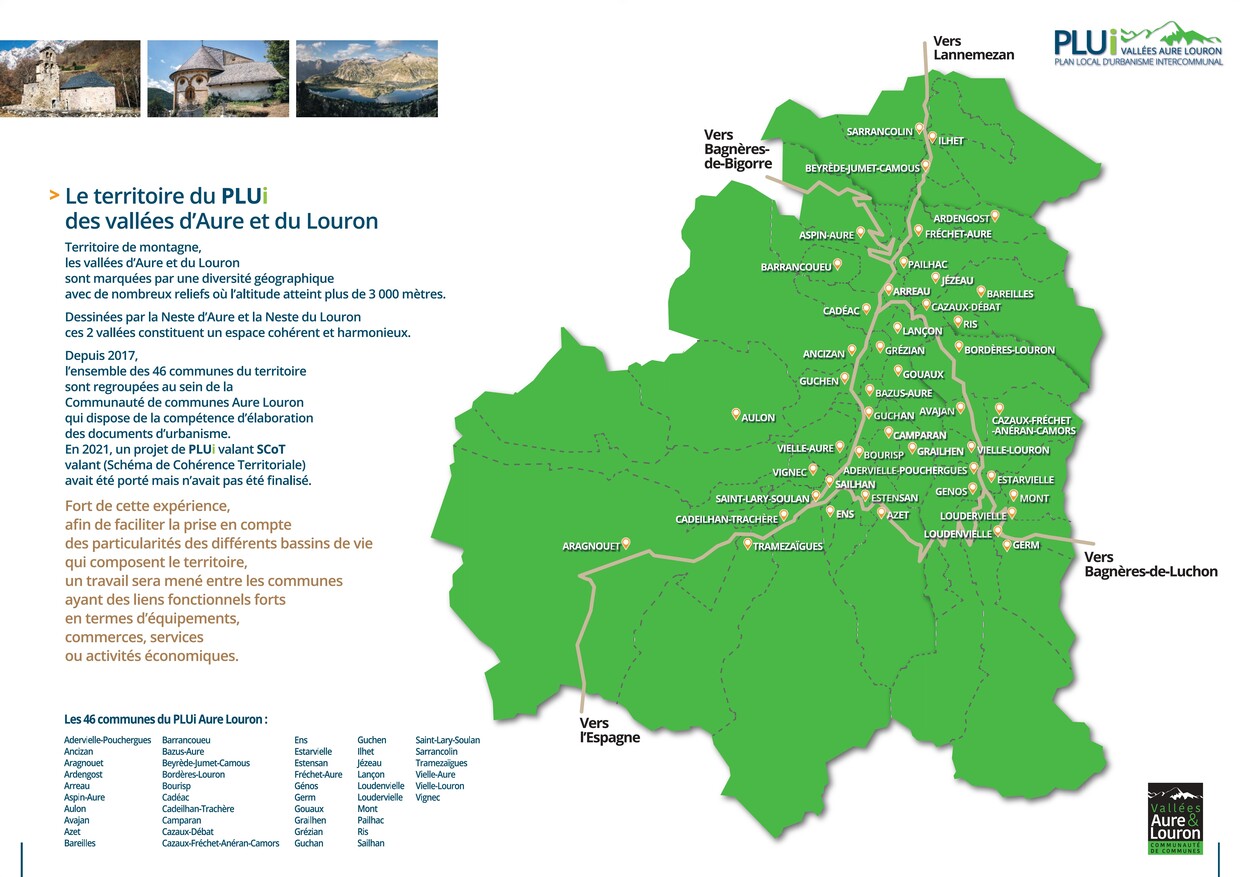 Les élus de la Communauté de communes Aure Louron ont prescrit l’élaboration d’un Plan Local d’Urbanisme intercommunal (PLUi) à l’échelle des 46 communes du territoire par délibération du 19 septembre 2023 complétée par délibération du 18 juin 2024.