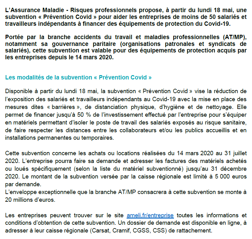 L'Assurance Maladie aide les TPE et PME à prévenir le Covid-19 au travail