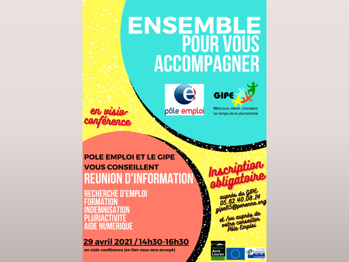 Cette réunion se déroulera en visio-conférence : merci de vous rapprocher du GIPE (05.62.40.08.14) ou de votre conseiller Pôle Emploi pour recevoir le lien de connexion et donner votre accord de participation à cette visio-conférence.