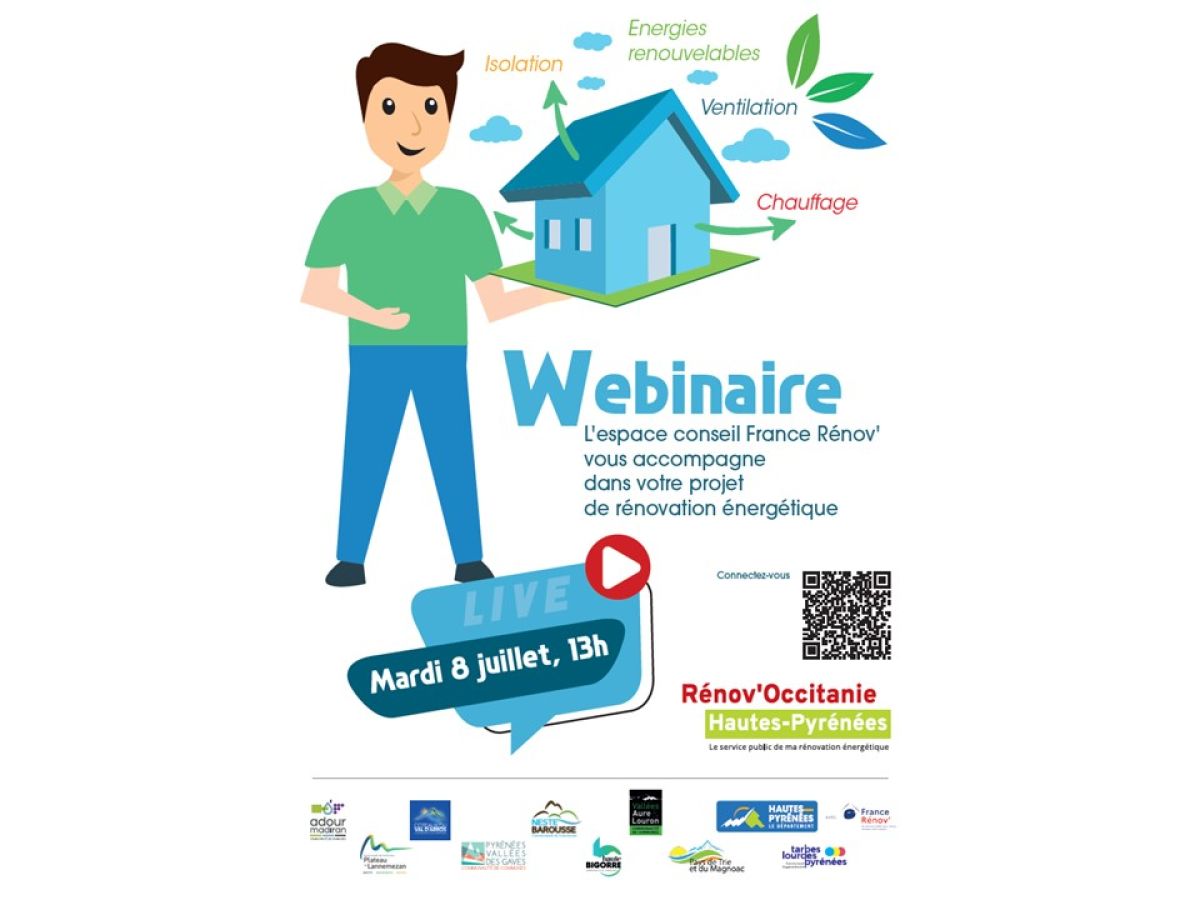 L’Espace Conseil France Rénov’ - Guichet Rénov’Occitanie des Hautes-Pyrénées vous invite le 8 juillet à 13h à un webinaire gratuit et ouvert à tous pour vous aider à faire les bons choix, trouver les bons professionnels et comprendre les aides qui existent.